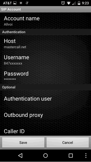 Account type – SIP