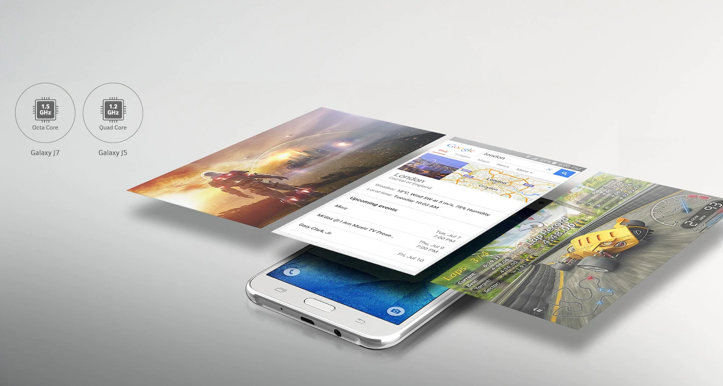 Incredible functionality is at your fingertips with the Samsung Galaxy J5 and J7. Enjoy exceptional pictures and videos with crystal-clear 5.0” / 5.5” Super AMOLED screens outstanding hardware performance and versatile cameras.