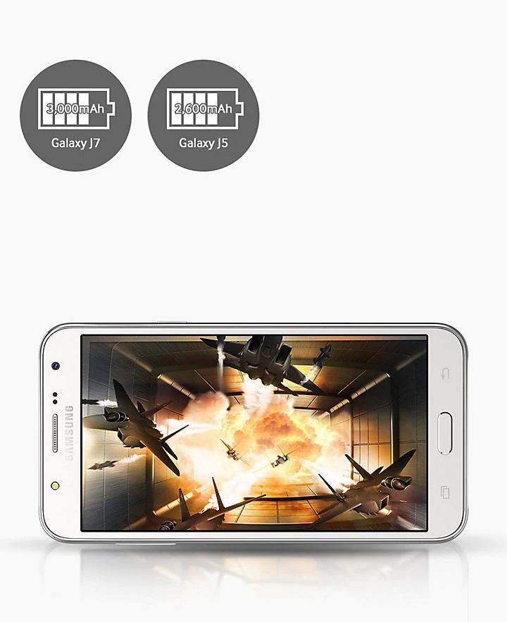 Get the most out of the Galaxy J series’ high capacity battery. Enjoy a variety of media contents, including movies, music games and web use for longer than ever – without the need to worry about your battery.
