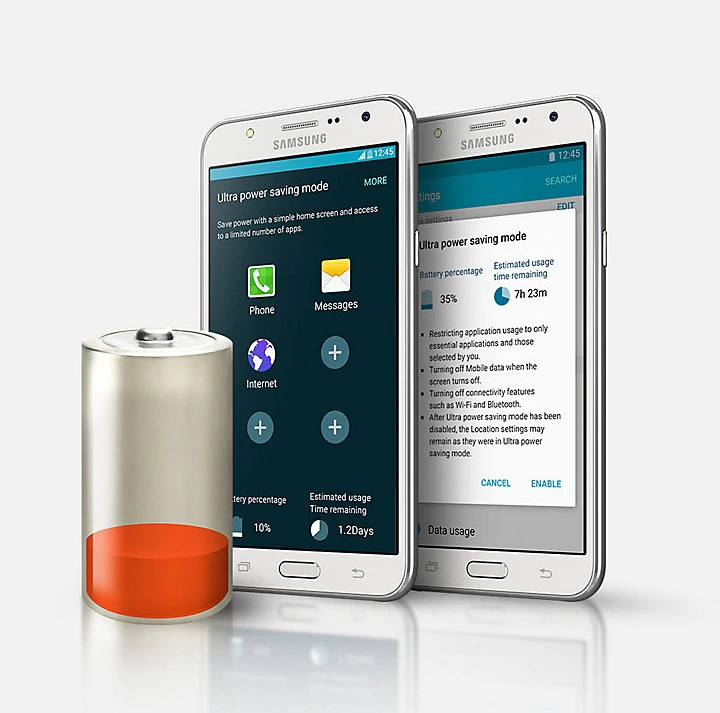 No need to worry if you notice your battery running low thanks to the Galaxy J series’ Ultra Power Saving Mode. Cut down on battery consumption by shutting down unnecessary functions on your device and switching the screen to a battery-saving monochrome mode. For extra power – when you need it most.